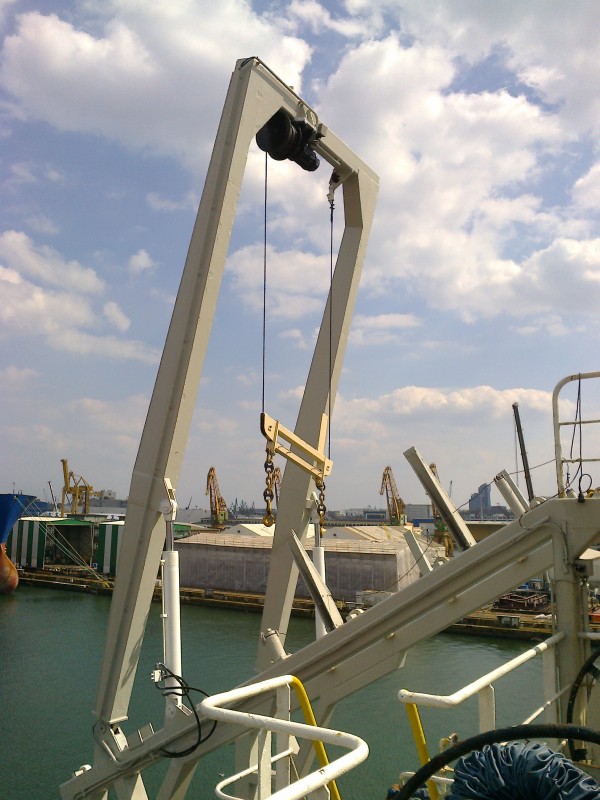 - repair of rescue boat discharge system: dismantling of the hydraulic cylinders, replacement of rod / seals, cylinders sandblasting and painting, dismantling of the electric winche, replacement of bearings, installation with load test